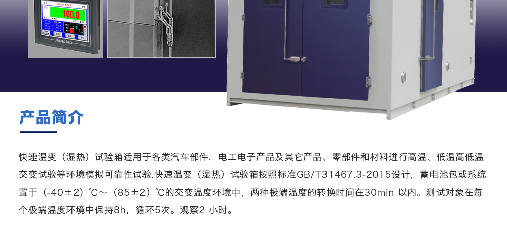 用途:快速溫變(濕熱)試驗箱適用于各類汽車部件,電工電子產(chǎn)品及其它產(chǎn)品、零部件和材料進行高溫、低溫高低溫交變試驗等環(huán)境模擬可靠性試驗.快速溫變(濕熱)試驗箱按照標準GB/T31